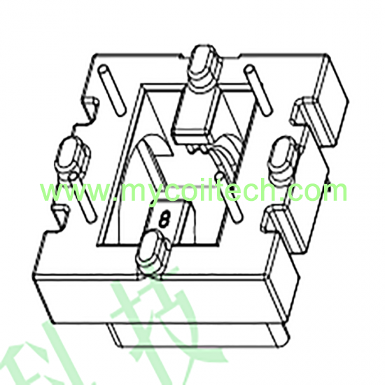 ET20 electronic transformer bobbin. ET/UT20 four section bobbin output transistors. Size=15.6mmX11.5mmX7.9mm. PBT material transformer bobbin. We can make tooling to meet different dimensions. UL REC: 94V-0