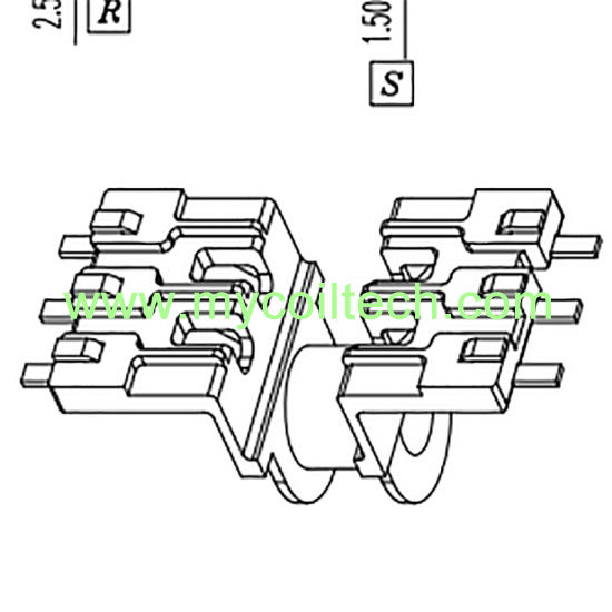 4+4 Pins Horizontal Bobbin, Phenolic Bobbin,UL REC:94V-0 SMD Bobbin,Pin Pitch=2.5mm Size=9.3mmX8.9mmX8.2mm